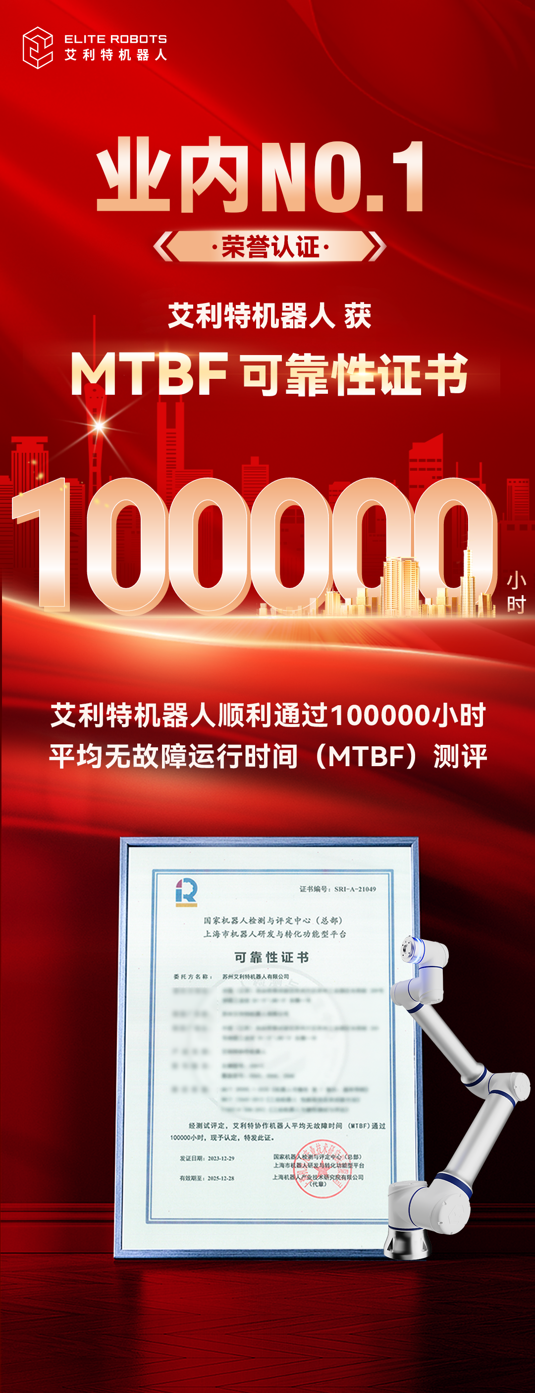 获 MTBF 10万小时认证是星空xk协作机器人产品可靠性的强势证明,刷新了协作机器人品质新高度和质量里程碑,是国产协作机器人可靠性比肩国际同类产品,甚至实现全球领跑的重要一步。