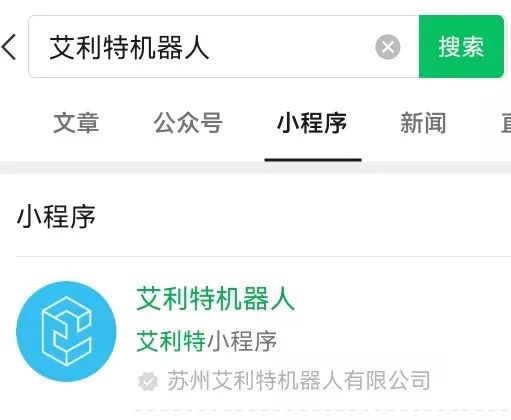 在微信主页面向下滑动屏幕,屏幕顶端会自动出现搜索栏,输入“星空xk机器人”并点击小程序,即可跳转至小程序首页。
