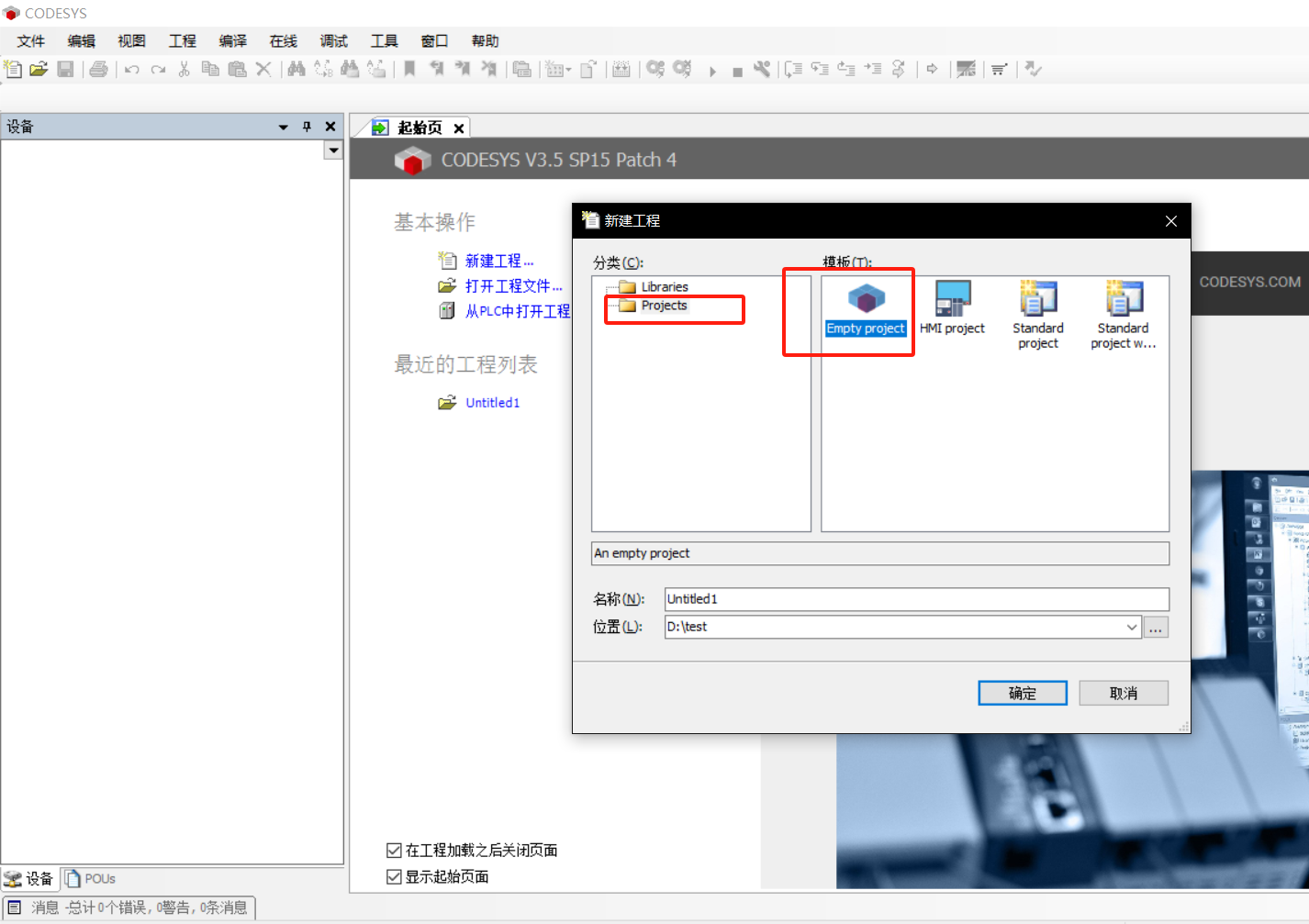选择新建设备 Untitled1,右键点击添加设备,选择对应的 CODESYS Control Win V3 X64 中的 PLC,点击添加设备