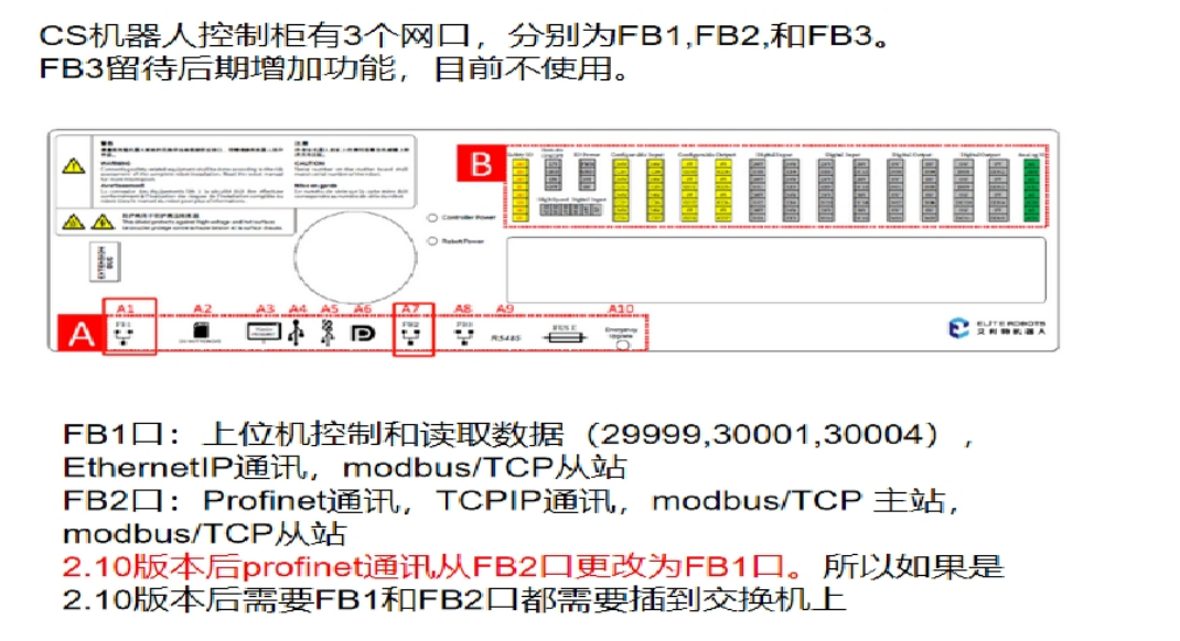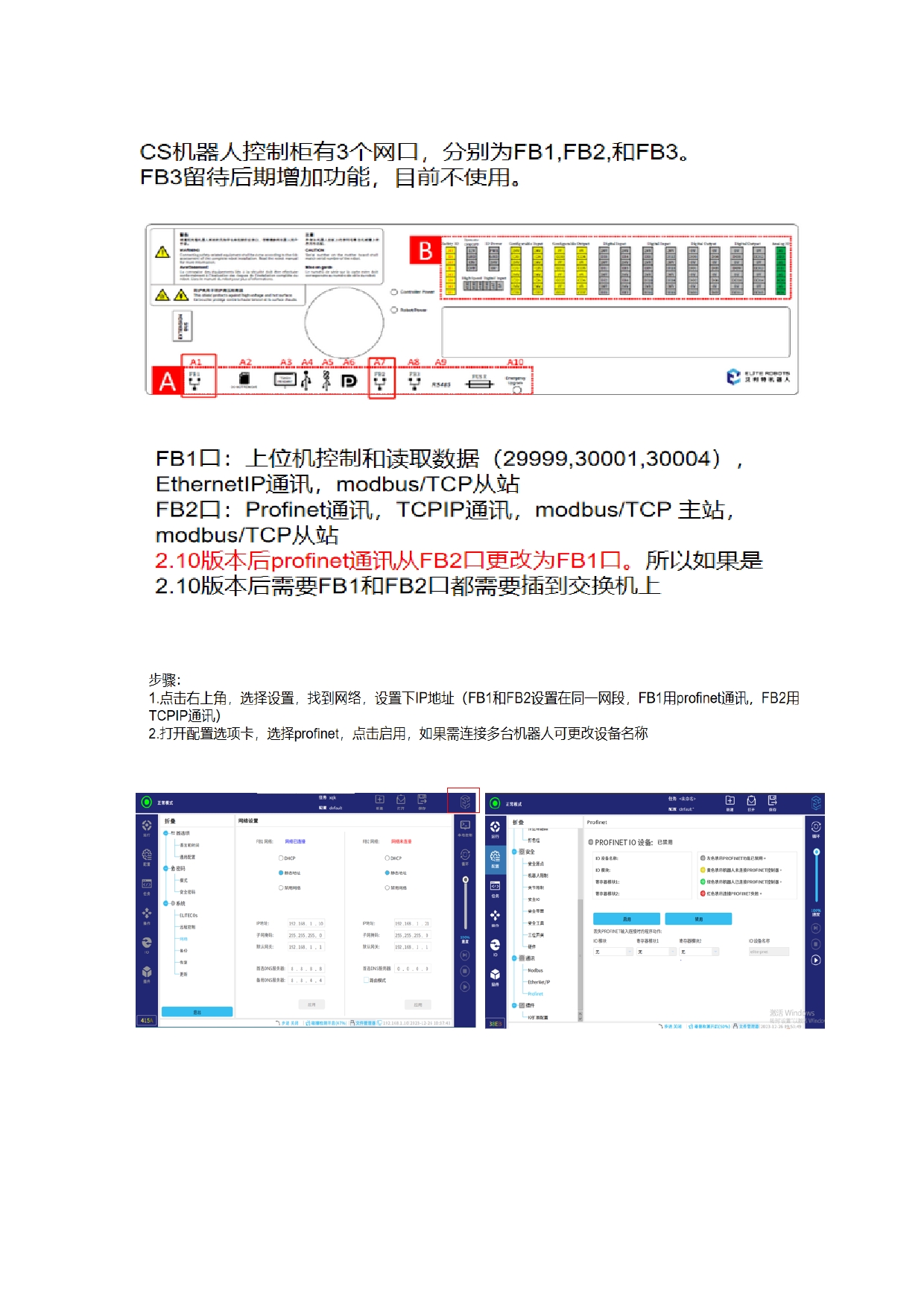 2.TCP/IP 通讯需要使用 FB2 口,需在网络里配置 FB2 网口 IP 地址