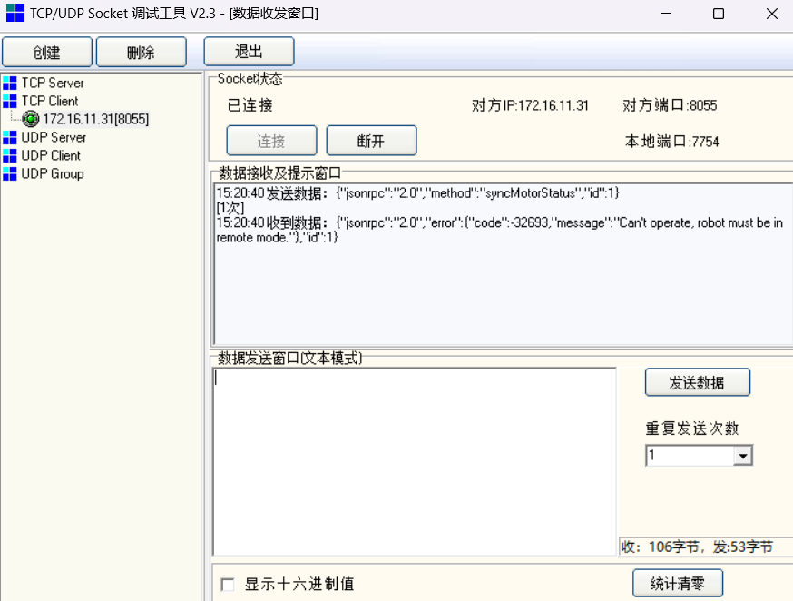 3、 该日志通过缓存刷新,如果上位机发送指令太少则不会在日志中记录,缓存到一定数量才会加载到日志中。(可通过登录网页版示教器增加缓存量,网页版示教器每 2秒自动缓存一条日志;也可上位机多发一些指令增加缓存量)
