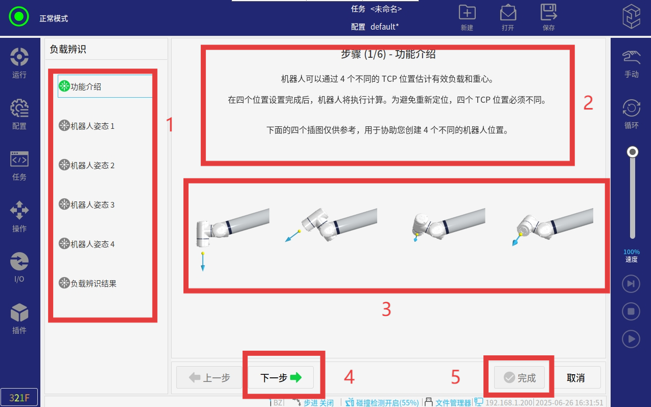 3. 按照下图中所示机械臂位姿,设置4个不同的点位,设置好后点击完成即可。