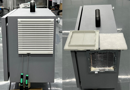 ● 从控制柜中取出过滤器,并用低压空气彻底清洁;