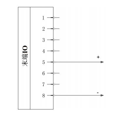 接线方法:如下图双针模式1接线,将电源线(5)与TI3/TO3/PWR2线(3)连接,接地线(8)与 TI2/TO2/GND2线(4)连接。